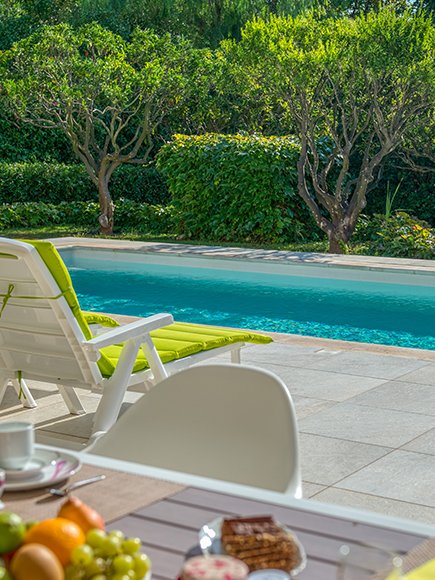 Entièrement rénové, le logement, situé au rez-de-jardin de la villa, est constitué de deux chambres avec chacune une salle de bain, un salon, une salle à manger et cuisine équipée. Une chambre attenante avec salle de bain est également disponible moyennant un supplément, sur demande uniquement. À l’extérieur, vous bénéficierez d’une piscine avec vue sur notre jardin composé d’arbres fruitiers.
